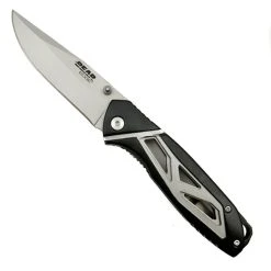 Bear Edge, a division of Bear & Son Cutlery, is making its debut this year–offering high quality products that utilize mostly imported parts that are proudly assembled in the USA. This flipper features a liner lock designed model that has been inset into the handle which helps reduce the overall weight of the knife. Additionally, the stainless steel blade is deployed with the ambidextrous spine flipper function or via the dual thumb studs and the fluid action is thanks in part to the ball bearing washers it rides on. This model features a black and silver skeletonized aluminum handle, stainless steel liners, a drop point style blade in a bead blast finish and the reversible pocket clip is designed for tip up carry only but is eligible for a left or right hand carry option.