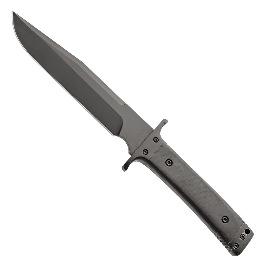 The Bear Tac III is a tactical fixed blade knife with a solid design ready for action. This knife clocks in at 10″ overall, making this the ideal size for a lot of larger tasks as well as being capable of smaller tasks without being too overwhelming and unwieldy. The blade of this knife is made of D2 tool steel, providing you with great wear resistance and abrasion resistance. This clip point blade has a black finish. This tough blade is paired with handle scales made of black G10, meaning you will have a comfortable, solid grip even in adverse weather conditions. The Bear Tac III is a fantastic addition to any adventure pack and a worthy everyday carry.Â