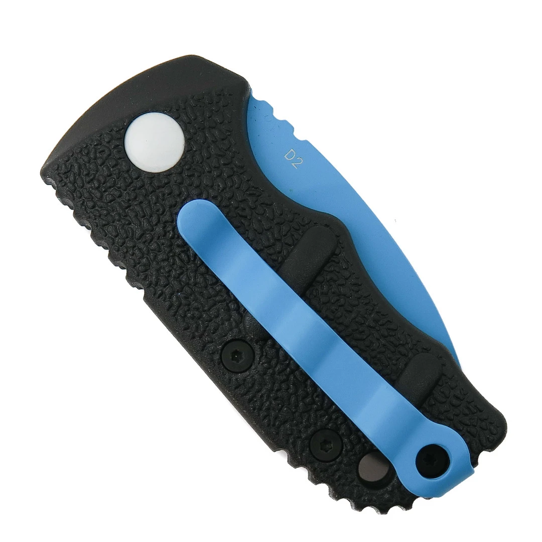 This BladeOps Exclusive Boker Sub Kalashnikov automatic knife features a sub 2″ blue finished D2 blade.