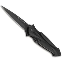 Boker Magnum Starfighter 2.0 Black Folder Knife is a futuristic-looking, slim knife. The handle is made of textured black G10 handle scales, providing excellent grip even during tough jobs. The blade is made of 440A stainless steel, sharp on one side with a flipper guard for one-handed opening. This tough, striking knife is a great addition to any collection.Â