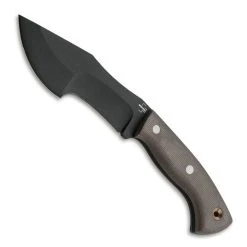 The Boker Plus Mini Tracker, designed by Dave Wegner, is a favorite of the camping community. The little brother of the Tracker, this knife features a blade made of 1095 steel. This steel is tough and can take a wicked edge. This blade is front-heavy, ideal for chopping, cutting, scraping, and all other kinds of camping and survival tasks. This blade is paired with ergonomic handle scales made of textured brown micarta, ensuring a solid, comfortable grip. The three hollow brass rivets are not just decorative, as the rear one can be used as a lanyard hole. The Mini Tracker is the perfect addition to your adventure kit.Â