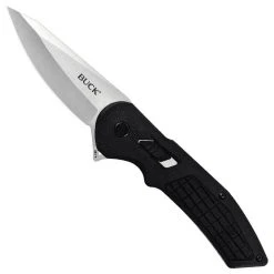 The Buck Black Hexam is a capable knife designed to meet your everyday needs. This knife boasts a drop point blade made of 7Cr13MoV steel which provides durability and corrosion resistance. The handle of this knife is made of black polymer which is textured to provide a comfortable, solid grip. This knife features SafeSpin technology, making the flipper opener easy and secure, giving you the option of never even touching the blade. This knife is an excellent everyday carry.Â