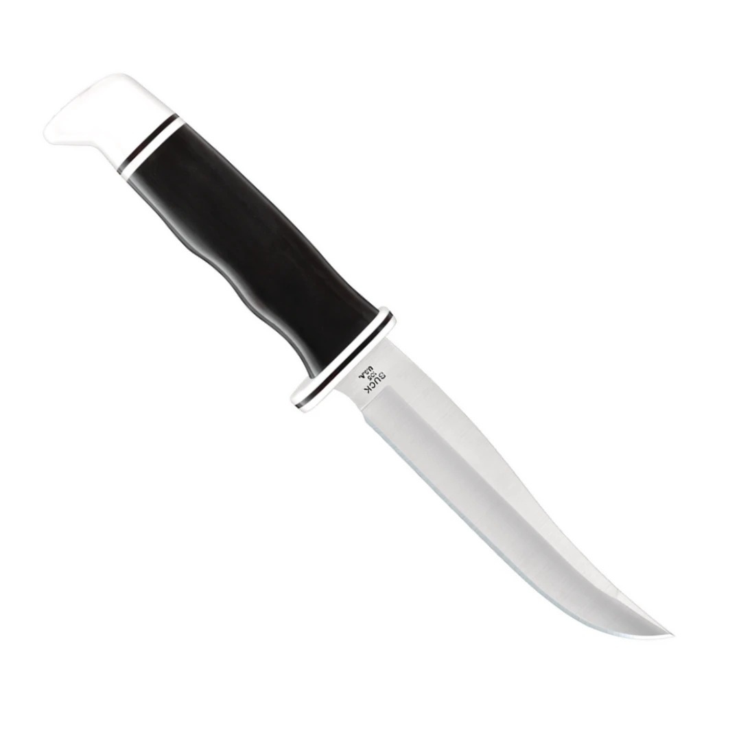 The Buck Pathfinder Black Phenolic Fixed Blade Knife is a classic hunting knife. This knife is designed with a modified clip point that is perfect for fish and small game. The blade of this knife is made of 420HC Stainless steel, providing excellent toughness and corrosion resistance. The black phenolic handles are light and look amazing. With a finger guard integrated into the handle, full tang construction, and a contoured grip, this knife is a great option for serious hunters.Â