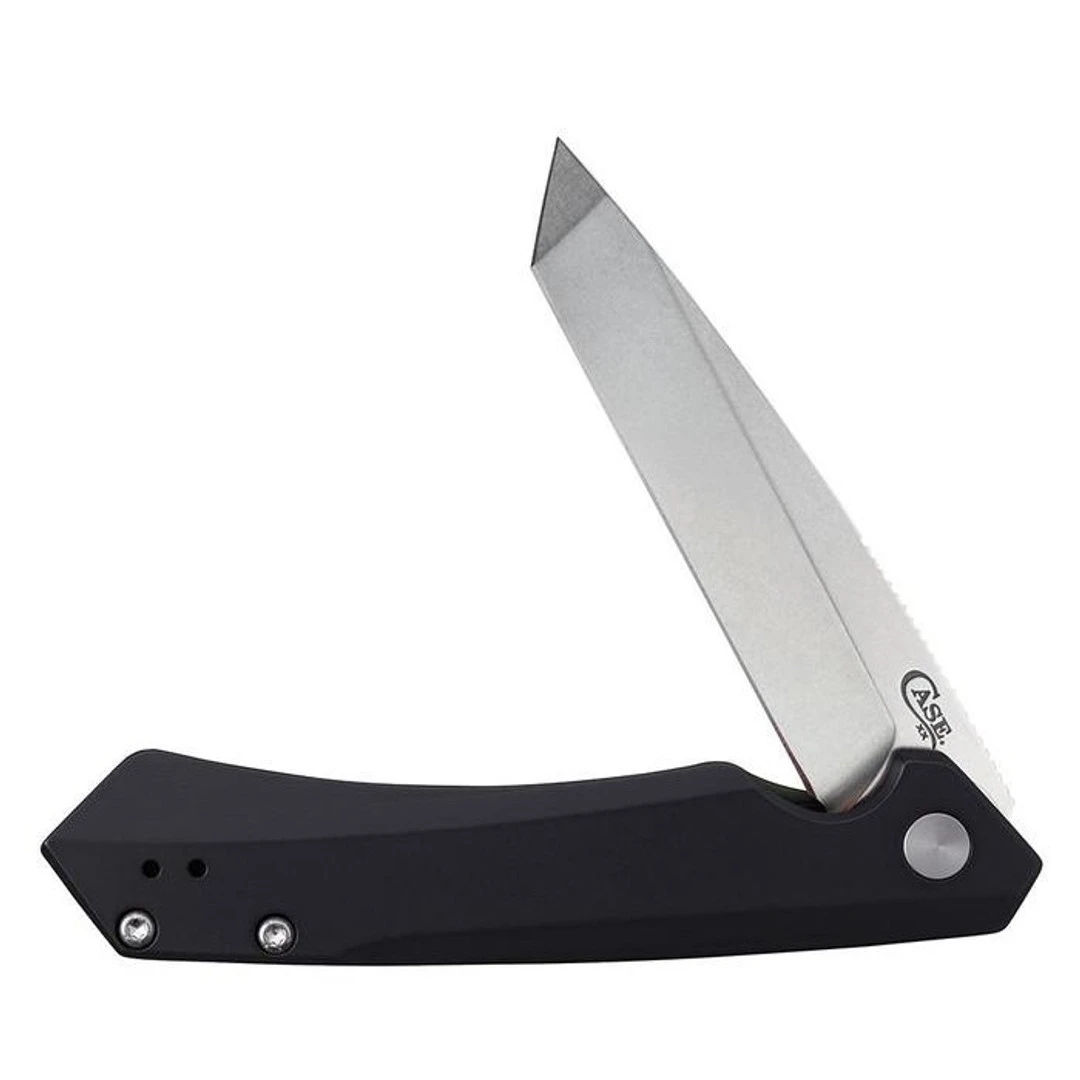 The Case Black Anodized Aluminum Kinzua Knife features a single tough blade. The Tanto blade shape is inspired by Japanese swords and offers a stronger tip for better piercing strength. Paired with a handle made of aluminum, this knife is strong and lightweight, making this knife a beautiful addition to any collection.