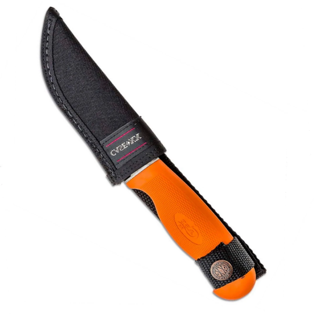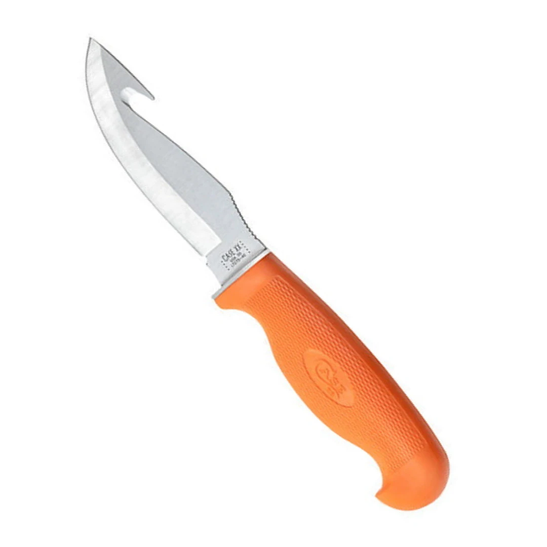 Case Hunter Orange Synthetic Guthook Hunter Fixed Blade Knife boasts a tough, capable gutting hook blade. This lightweight knife features a high-visibility waterproof handle that provides a solid, comfortable grip. The narrow blade is ideal for gutting, skinning and general outdoor chores. This blade is made of Trusharp Surgical Steel that holds an edge longer than conventional steel, so you won’t need to worry about this knife needing sharpening in the middle of a trip. This steel also offers incredible strength and corrosion resistance. The handle of this knife is made of orange synthetic.