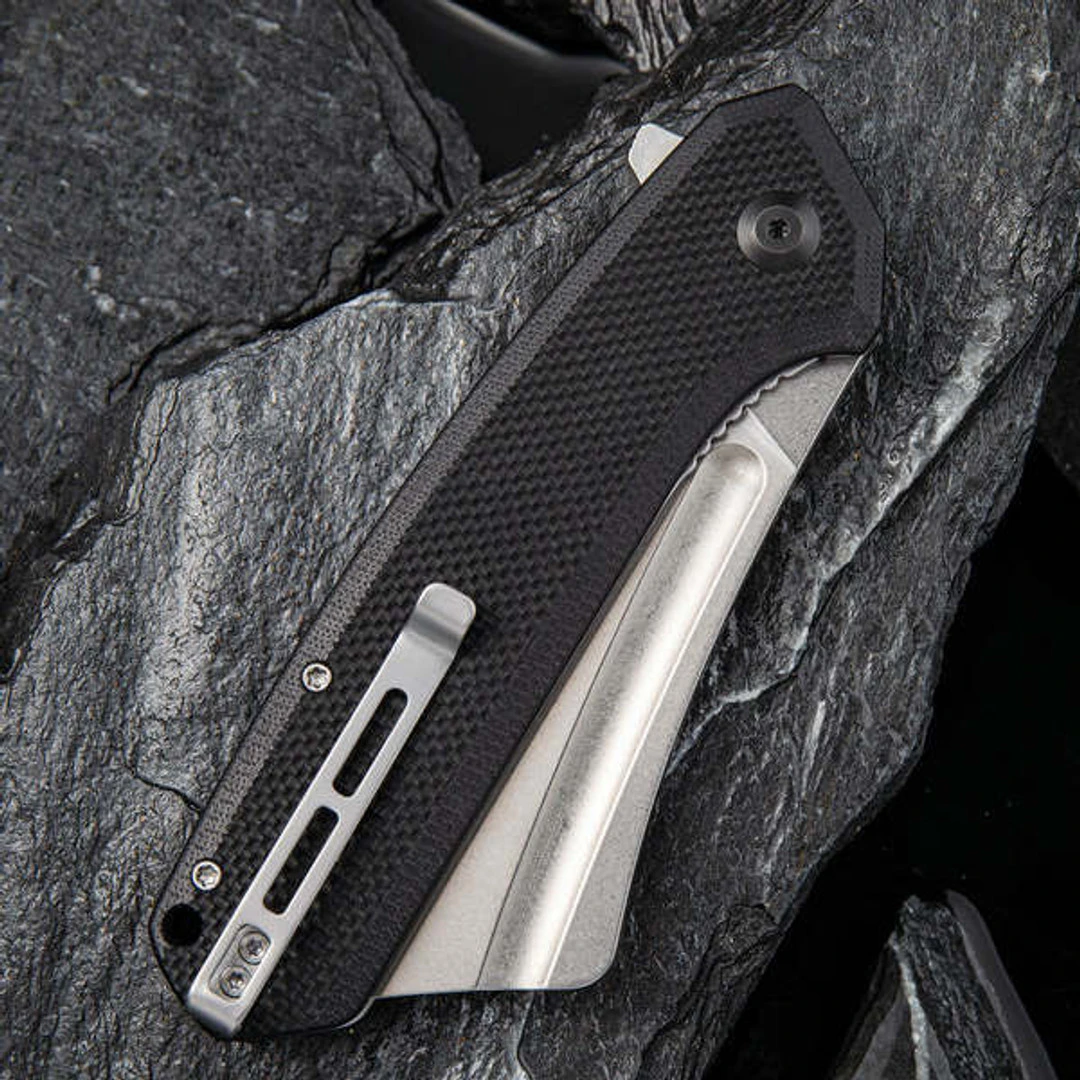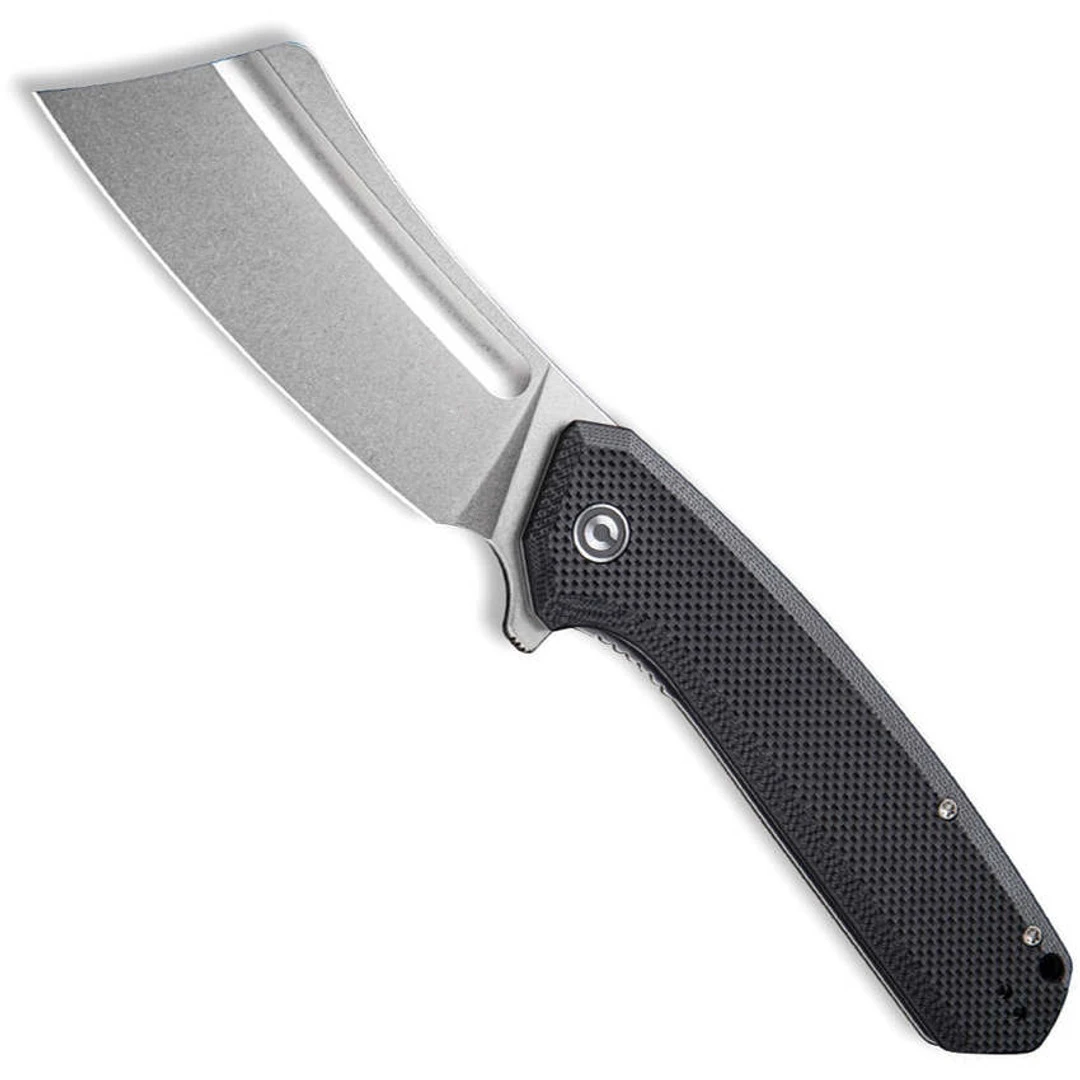 The CIVIVI Bullmastiff is a tough flipper with a stonewash finished cleaver blade. The flat ground blade snaps open smooth and easy on the caged ceramic ball bearing system. This model features black G-10 handle scales and a left/right reversible tip-up deep-carry pocket clip for discreet carry.