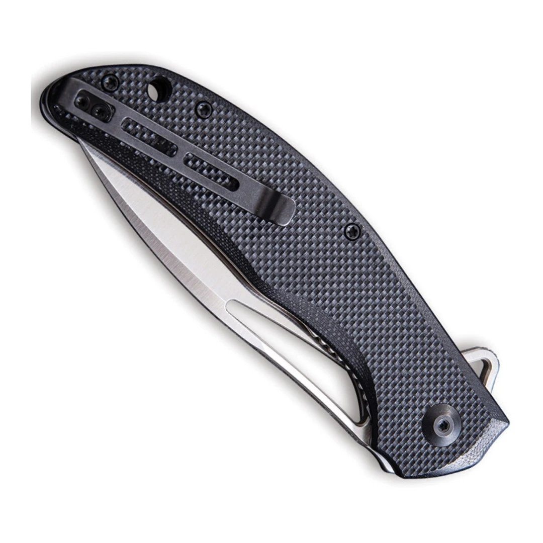 The CIVIVI Vexer features a satin finished spear-point D2 blade. This full body flipper opens smooth and easy on the caged steel ball bearings and locks up tight with the linerlock. The tip-up deep carry pocket clip is l/r reversible.