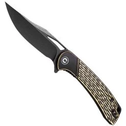 The brass CIVIVI Dogma flipper boasts a black stonewash finished D2 clip point blade that opens smooth and easy on a caged ball bearing system. An ideal size blade for EDC, the belly lifts to a sharp point delivering a perfect edge for slicing. The finger choil allows for maximum control on fine cuts. The brass handle scales plenty of milling that gives you a secure grip and offers a fantastic pattern that looks great. Stainless steel liners and a G-10 backspacer offer extra strength. Reversible, tip-up deep-carry pocket clip. The Dogma will quickly become your favorite new carry knife.Â
