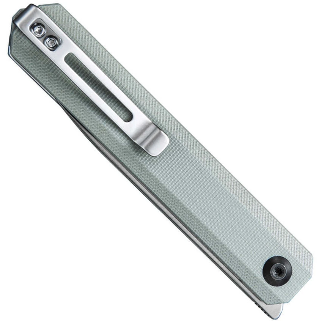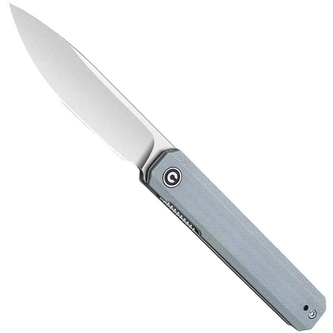 The CIVIVI Exarch is a long, slim gentleman’s folder designed for smooth and easy open with a front flipper. This model features gray G10 handle scales. The D2 hollow ground blade has a satin finish. The knife also has a deep carry tip-up pocket clip that is r/l reversible.Â