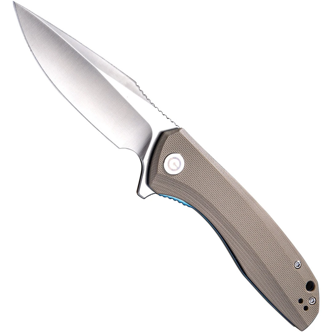 The CIVIVI Baklash features a 3.5″ satin blade that opens easy with a gentle push on the flipper. Caged steel ball bearings allow the blade to open and close effortlessly. The Tan G10 handle scales deliver a secure, comfortable grip. This classic knife has it all, style, comfort, and performance. Reversible R/L tip up clip.