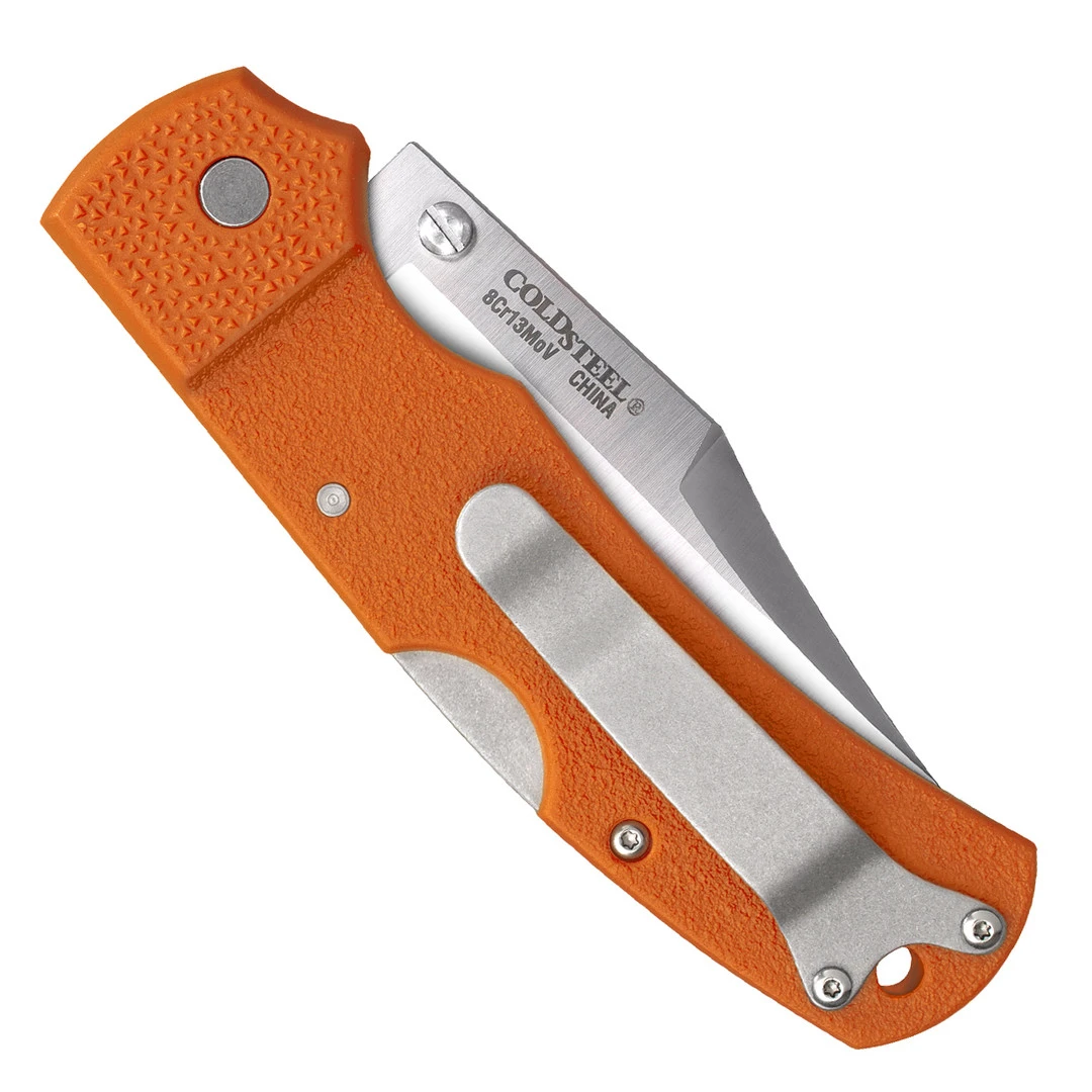 The Cold Steel Double Safe Hunter Orange Folding Knife is a budget friendly yet high performance hunting knife. This knife is the perfect size for precise cutting as well as larger chores. This versatile knife is great for any mountain adventure. With a wide, clip point blade made of tough 8Cr13MoV steel, this knife is ready for any job. Boasting an ergonomic handle made of blaze orange glass-filled nylon (GFN), this knife is a dream to use.