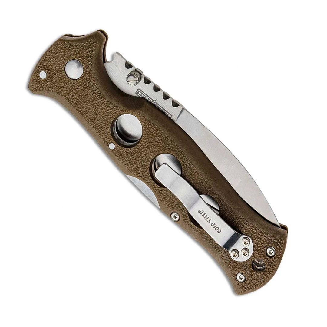 This special Cold Steel Gunsite Counter Point features a Spear Point blade with a partially serrated edge and a satin finish. The Griv-Ex handle material provides a lightweight and solid grip for all occasions. The combo edge blade makes cutting a piece of cake! This is a wonderful tactical pocket knife option, small enough to carry in your pocket or backpack, with the strength and durability you look for in all your outdoor knives.Â