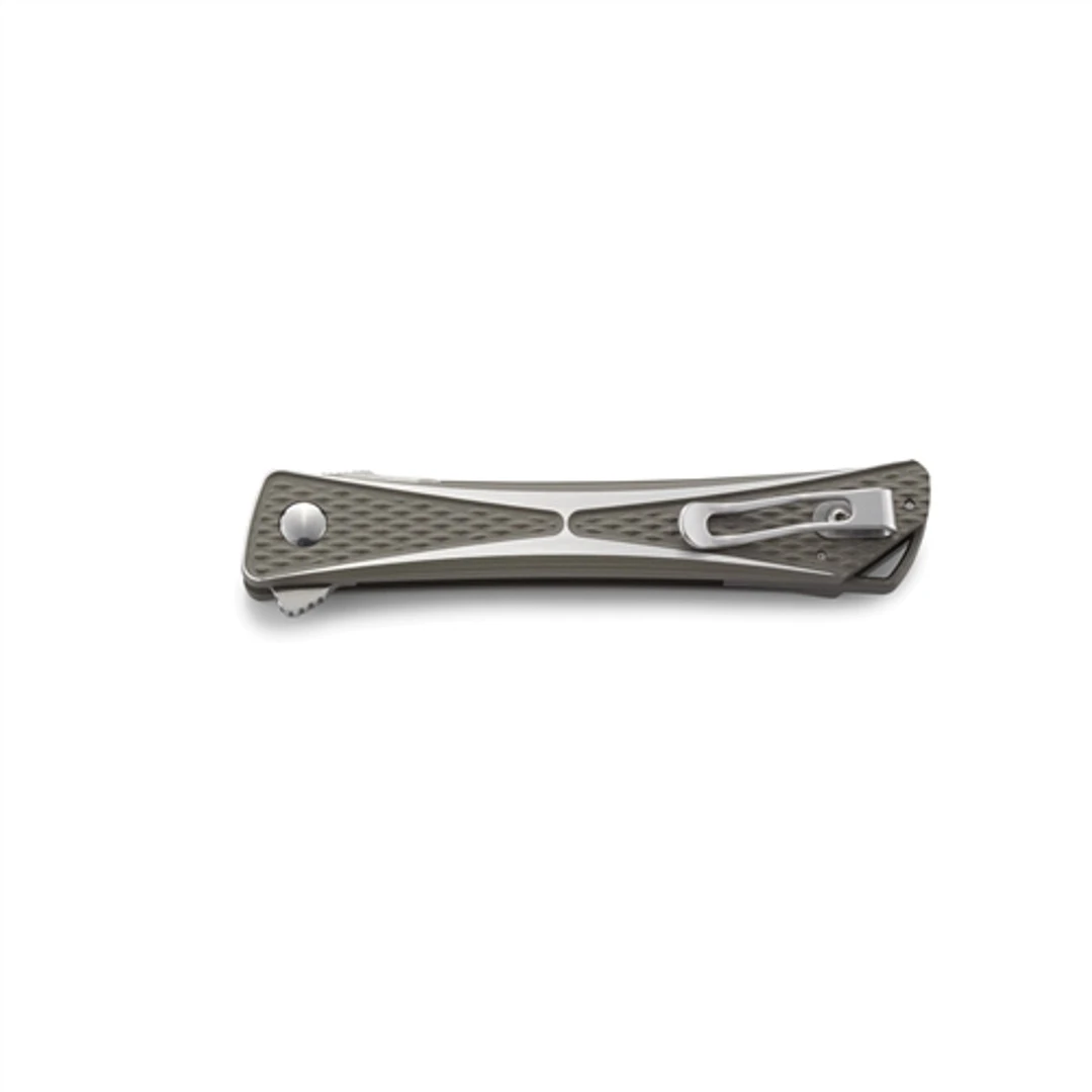 The Crossbones is one of many new models released by CRKT this year. Designed by American knifemaker Jeff Park, who apprenticed with Ken Onion, this flipper adds a fresh new design to form and function. Each liner lock designed model features a diamond texture throughout and the stepped contouring of the handle scale really promotes a successful grip despite such a slim profile. Furthermore, each stainless steel blade is deployed with a spine flipper function and the fluid action can be attributed to the IKBS™ ball bearing pivot system. From the beginning, CRKT has been driven by a single purpose: to bring useful technological advancements and entirely new product concepts to today’s market. This model, the 7530, features a two-toned dark grey aluminum handle handle complete with silver highlights, a trailing point style blade in a satin finish and the reversible pocket clip is statically designed for tip up carry only on the traditional side of the handle.