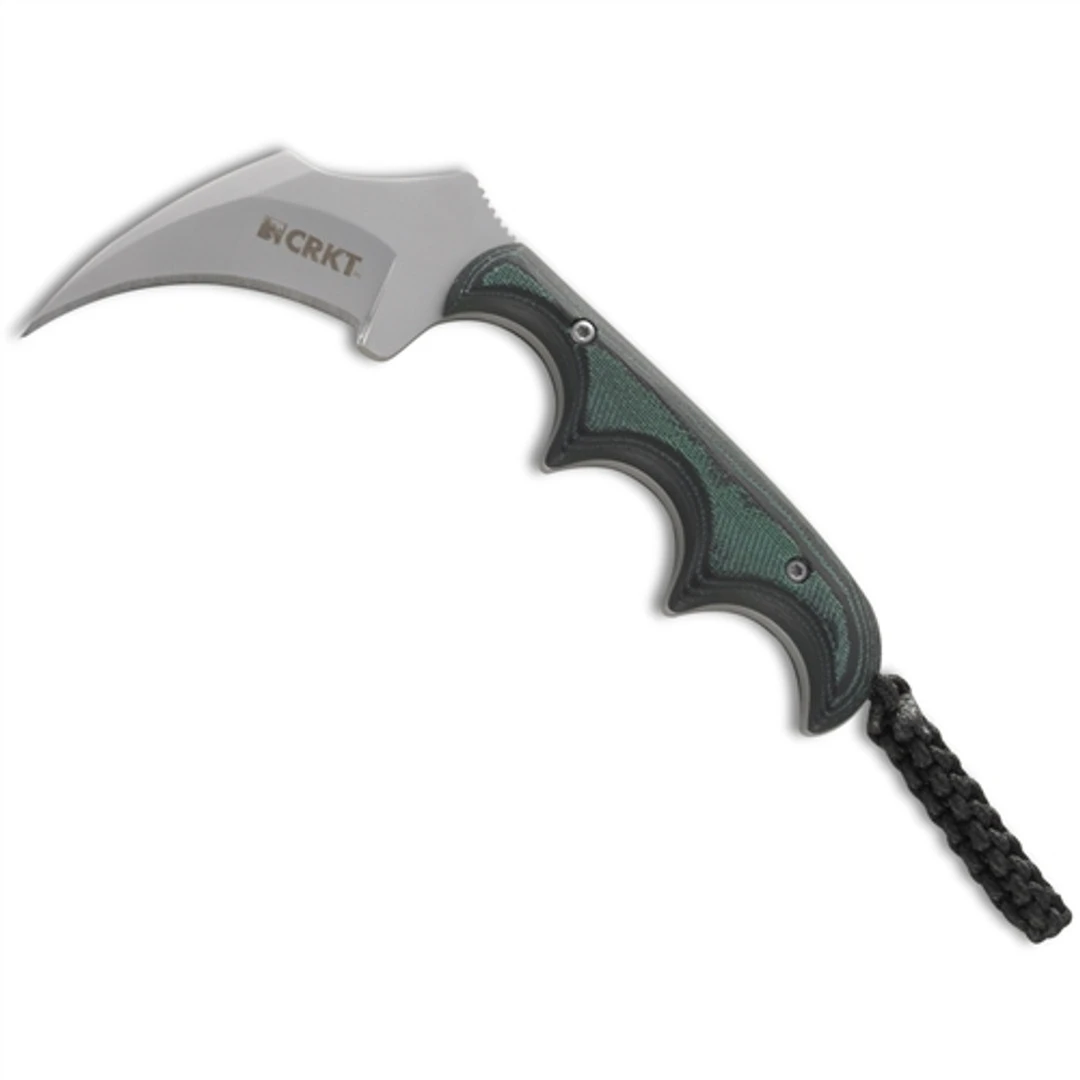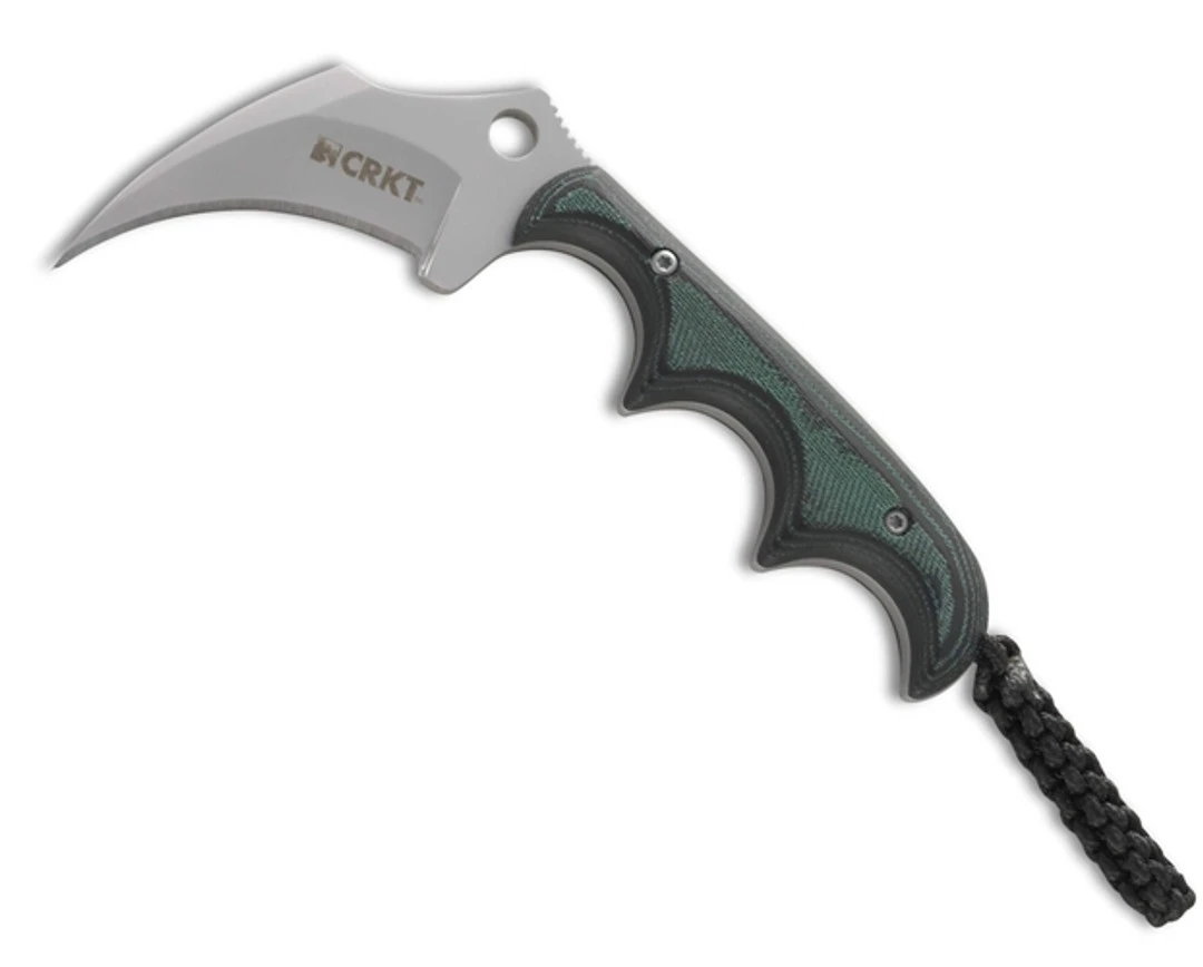 The CRKT Keramin is ready to cut whatever you throw at it. This handy Karambit style utility fixed blade is another addition to the Minimalist series of neck knives by Alan Folts. A deep finger choil gives you cutting power when and where you need it. The full tang, stainless steel blade has a bead blast finish. The ergonomic handle scales offer you detail cutting control. Comes with black sheath.