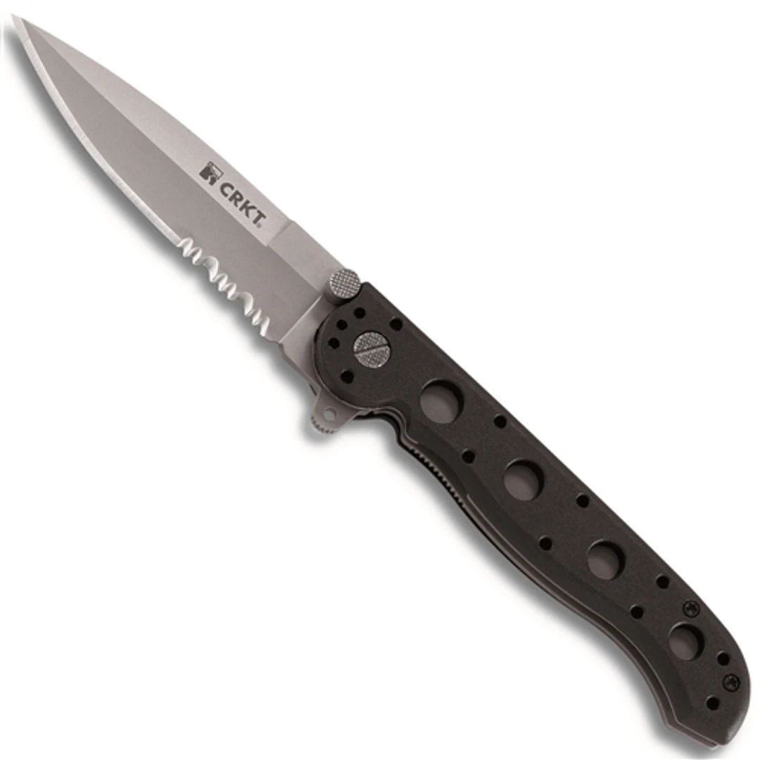 The CRKT M16-13Z Kit Carson designed knife is a slim profile every day carry knife that combines the toughness of AUS-8 steel with the rigidness of a GFN handle. Each liner lock designed model features the Carson Flipper that not only deploys the blade but doubles as a blade guard in the open position. Additionally this knife features CRKT’s automated liner safety which is a next-generation locking mechanism that sets a pin between the locking liner and the frame–virtually turning this folder into a fixed blade.This model, the M-16-13Z, features a black GFN (Glass Filled Nylon) handle, stainless steel liners, a partly serrated spear point style blade, complete with Triple-Point serrations, in a bead blast finish and the reversible pocket clip is designed for tip down carry only but is eligible for a left or right hand carry option.