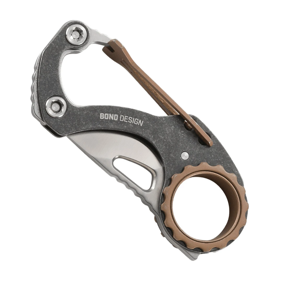 The CRKT Compano is the perfect companion for your pocket knife. This everyday carry knife features a body that has a built in carabiner, meaning this compact folding knife can hook right to your belt loop. The gorgeous satin blade is complemented by the classy black stonewash handle that features bronze accents, taking your everyday carry aesthetic to the next level. The blade made of high-carbon stainless steel is easy to sharpen and holds its edge and neatly tucks into the handle once you disengage the slip joint.Â