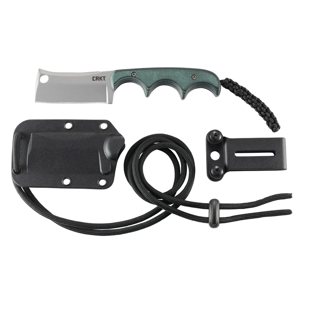 The CRKT Minimalist fixed blade family welcomes its new member–now sporting a throwback cleaver-style blade that offers plenty of cutting real estate. Wear as a neck knife or on a belt and enjoy supreme grip confidence with its deep finger grooves and slip-resistant handle material.
