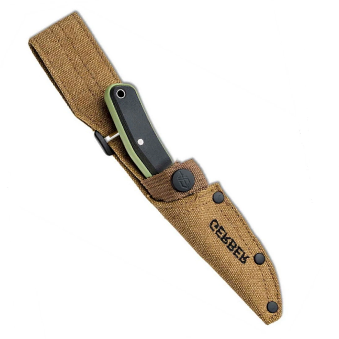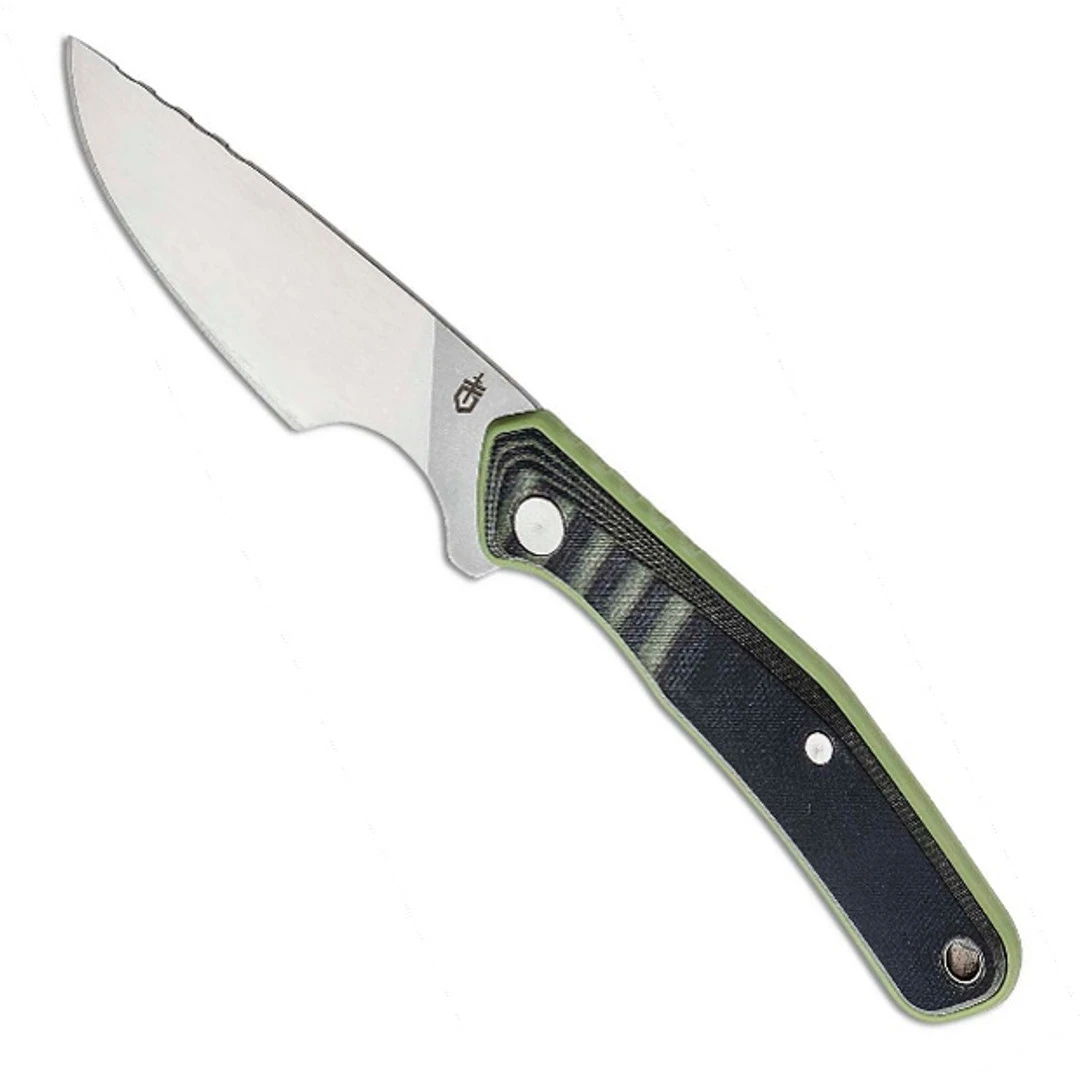 The Gerber Downwind Caper Fixed Blade knife is made with a 7Cr17MoV stainless steel drop point blade and G-10/GFN handles making it an efficient hunting and camping knife. The multi-layered G-10/GFN handles provide increased hand grip while wet, which means you’ll be skinning your next bag like a pro. The blade steel is forged with spinal jimping for improved ergonomics.Â
