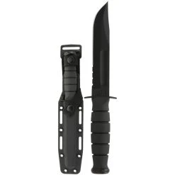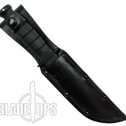The Ka-Bar USA Short Fixed Blade Knife features a black finished tanto blade with a combo edge. This short version is just 3/4 the size of the orginal. Comes with oval shaped Kraton handle and a leather belt sheath. Has USA stamped on blade. Made proudly in the USA.