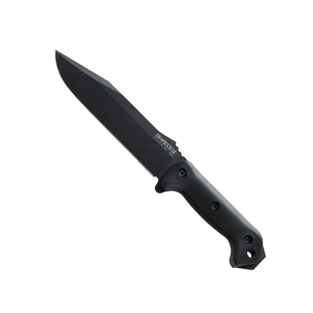 The ultimate BK&T all purpose utility knife was designed for soldiers, outdoorsmen, adventurers and anyone else who needs a sturdy combat knife that can stand up to hard use. Clip point 1095 Cro-Van plain edge blade with Ultramid handle scales. Comes with a MOLLE compatible heavy duty polyester sheath.