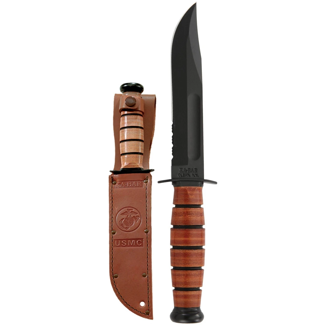 The most famous fixed blade knife in the world–the KA-BAR–was designed to serve our troops during World War II and is still doing its job, with honors, 70+ years later. This particular variation is not only 75% the size of the larger version, but is tang-stamped USMC and includes a matching embossed sheath. Made in the USA.