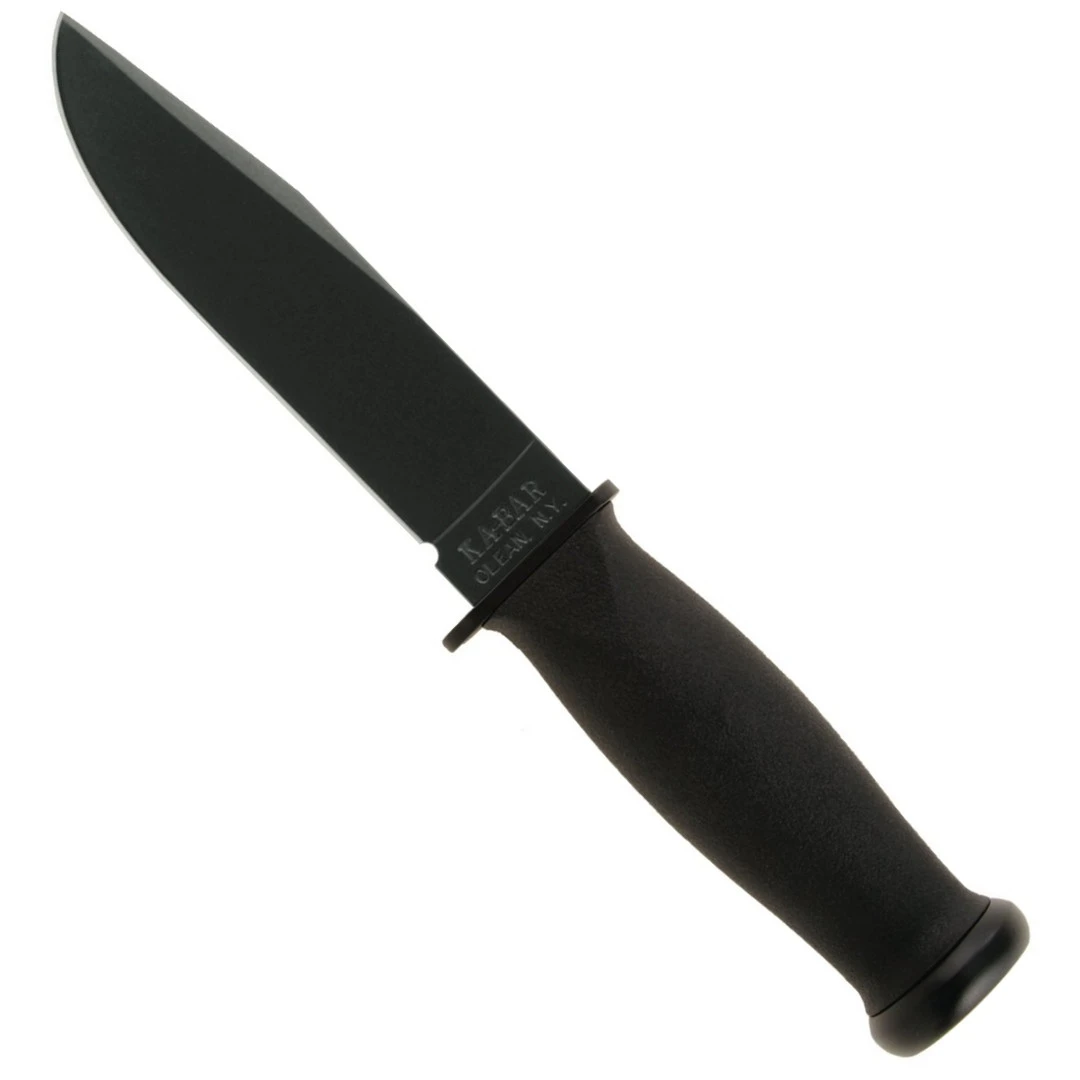 The Mark 1 is one of the most popular and most sought-after knife issued to the Department of the Navy during WWII. This remake is patterned after the original with the classic oval shape and modernized with handle materials that make it nearly impervious to sweat, chemicals, water, and wear. The blade is 1095 Cro-Van and features a “USN” tang stamp. Comes with a compatible hard plastic sheath.Â