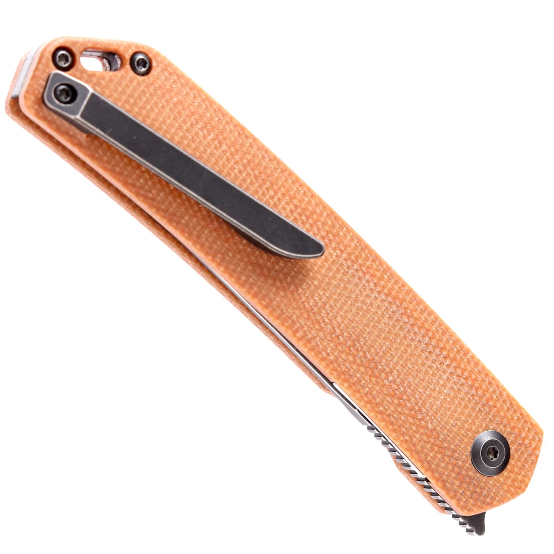 - Brown micarta handle for a smooth gripping surface that is comfortable to hold.Â