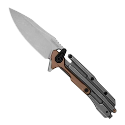 - D2 blade steel offers edge-holding capability, strength, and hardness; gray PVD and stonewashed blade offers unique look and hides use scratches