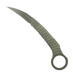 Built with a hawkbill blade paired up with a pinky ring, this knife is designed to be ready when you need it. The blade has an Apocalyptic Stonewash finish.