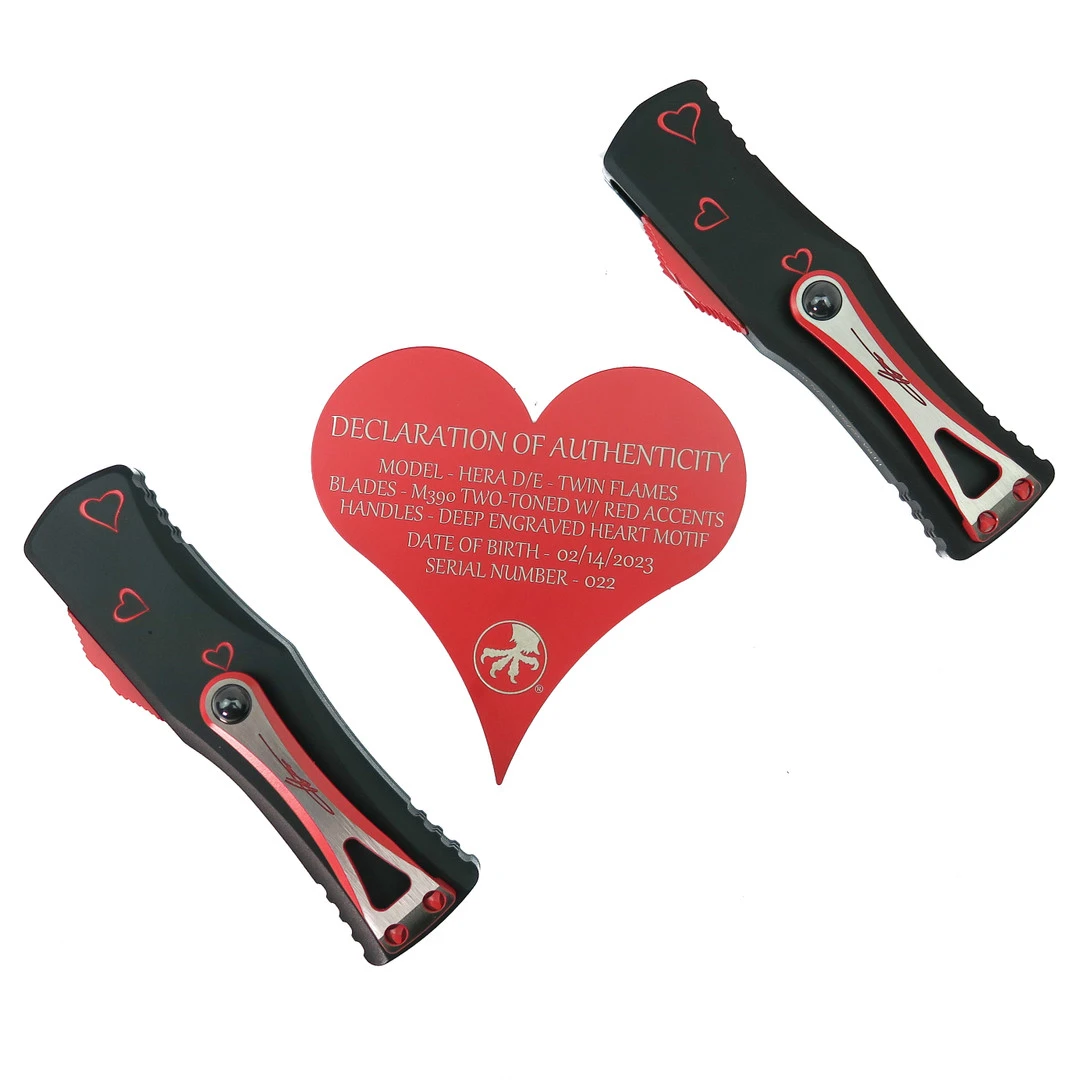 - Handle Material: Black Anodized Aircraft Aluminum with Red Cerakote Hearts