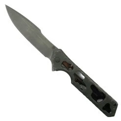 The Olamic Cutlery Rainmaker features a stonewash finished Bohler M390 harpoon blade paired up with dark wash finished 6AL-4V titanium handle scales for a unique look.