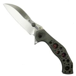 This big tactical folder has a blade that is deployed with either the flipper or the unique thumb stud system. The titanium stud can be adjusted, reversed, removed, rotated or multiplied.