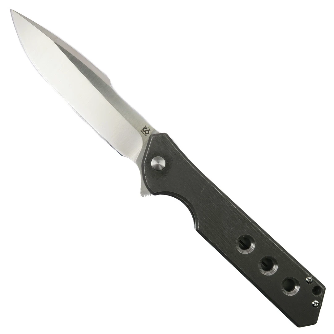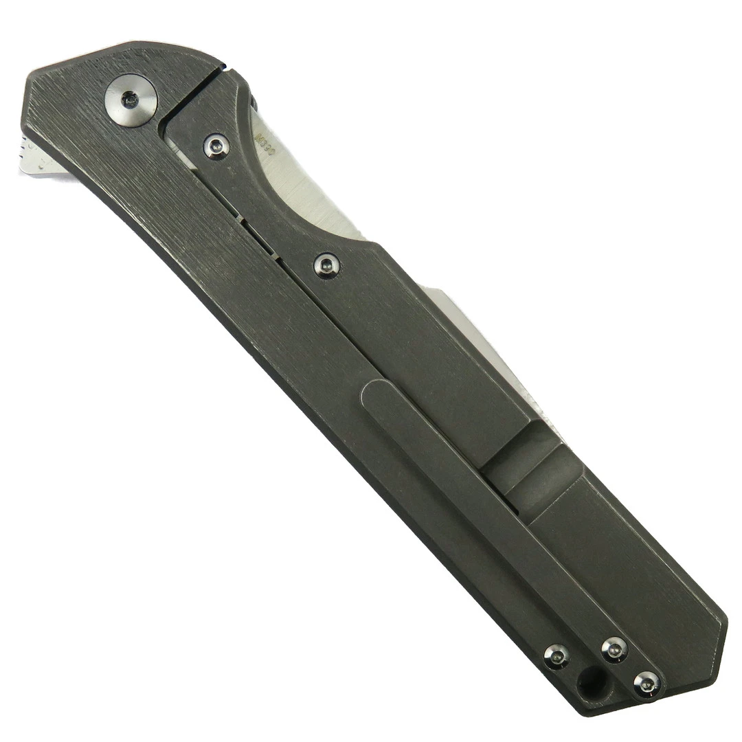 This framelock manual flipper knife boasts a caged ball bearing system allowing for easy opening and tight lock up. The knife has a floating satin titanium backspacer along with Torx screw construction that gives the knife maximum strength and durability.
