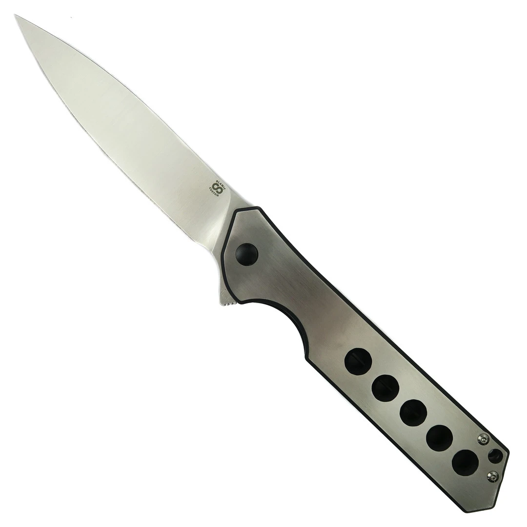 This framelock manual flipper knife boasts a caged ball bearing system allowing for easy opening and tight lock up. The knife has a floating satin titanium backspacer along with Torx screw construction that gives the knife maximum strength and durability.