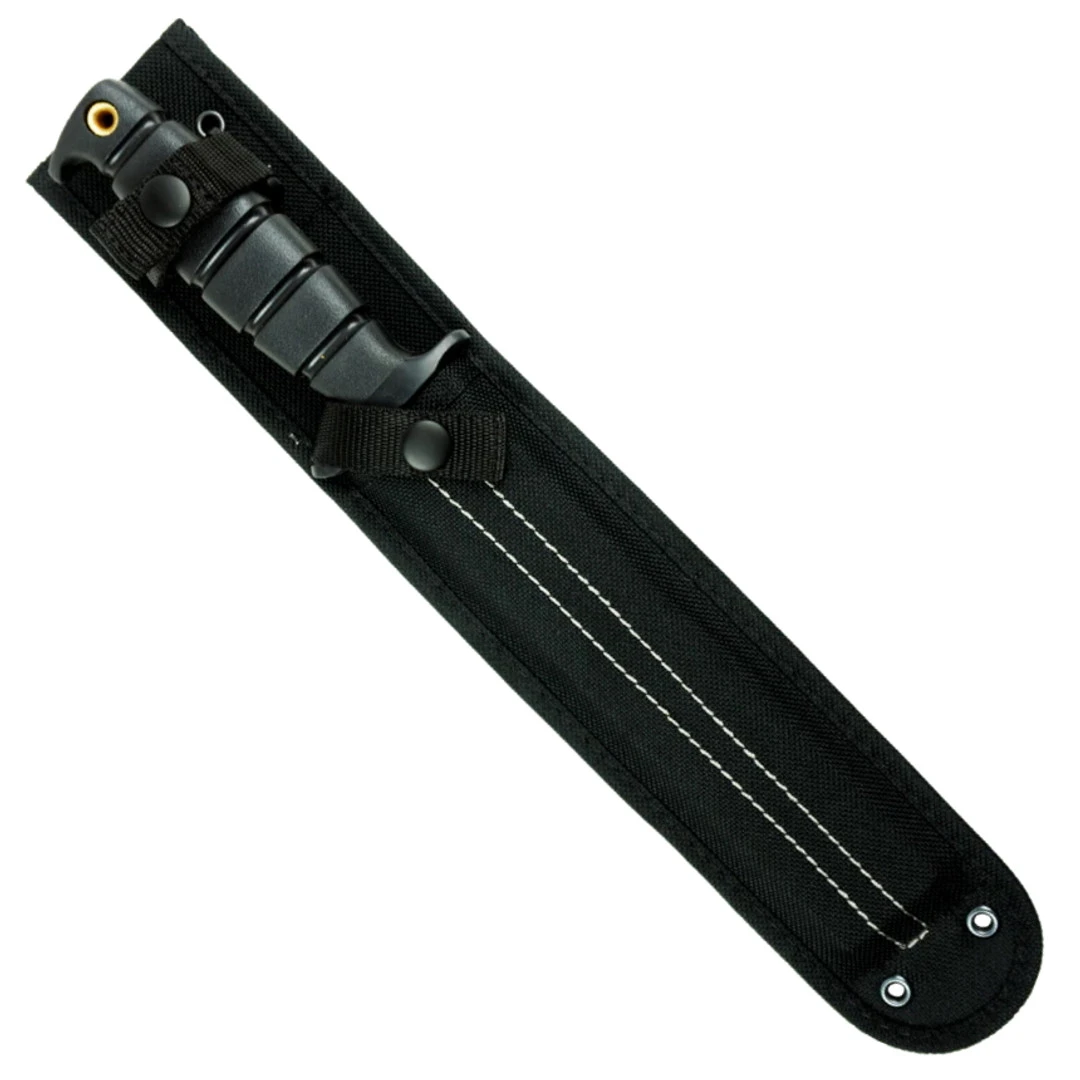 The Ontario SP-6 Fighting Knife boasts a durable, versatile design. The blade of this knife is made of 1075 steel and boasts a stealthy black finish. The handle is made of black zytel and is grooved for a comfortable grip. The handle features a double guard for control and protection when using.Â