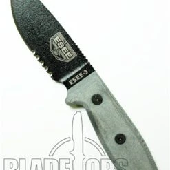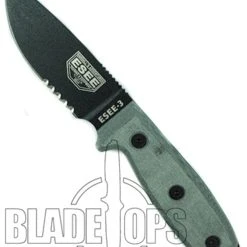 ESEE Knives Fixed Blade Knife, Black Part Ser Blade, Modified Pommel, Linen Micarta Handle, ESEE-3SM