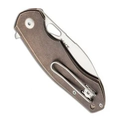 GiantMouse ACE Biblio Bronze With Natural Canvas Micarta Inlay Folding Knife, Satin Blade