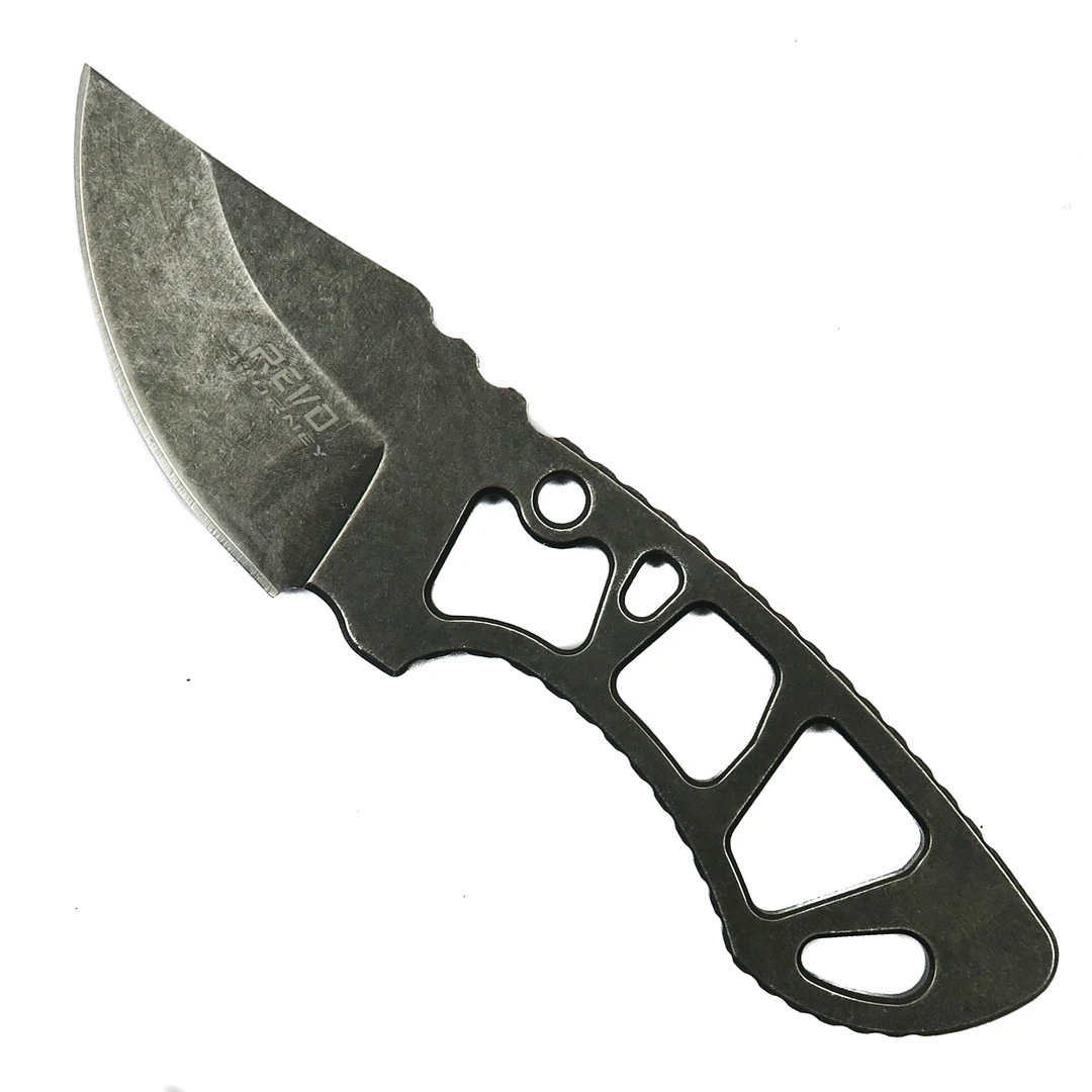 The REVO Journey Companion Knife Dark Gray Stainless Steel is a durable, excellent knife for your outdoor adventures. This knife boasts a classy black stonewashed blade. With a skeletonized handle, this is a lightweight knife with a comfortable grip. This knife is a great addition to any everyday carry.Â
