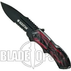 Smith & Wesson Black Ops Spring Assist Knife, Smoked Red Handle, Black Part Ser Blade, SWBLOP3RS