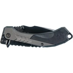 Smith & Wesson Executive Barlow Black G-10 Spring Assisted Knife is a great everyday carry. This knife is made of tough 8Cr13MoV steel. This steel is easy to sharpen and is polished into a satin finish. The handle of this knife is made of black G10. This lightweight knife is a great, functional addition to any collection.Â