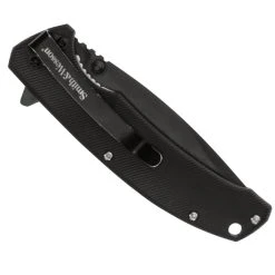 Smith & Wesson Wood Handle Executive Barlow Spring Assisted Flipper Knife is a great everyday carry. This knife is made of tough 8Cr13MoV stainless steel. This steel is easy to sharpen and is polished into a satin finish. The handle of this knife is made of Rosweood and Stainless steel, and boasts a liner lock. The Executive Barlow comes with a deep carry pocket clip for easy transportation. This lightweight knife is a great, functional addition to any collection.Â