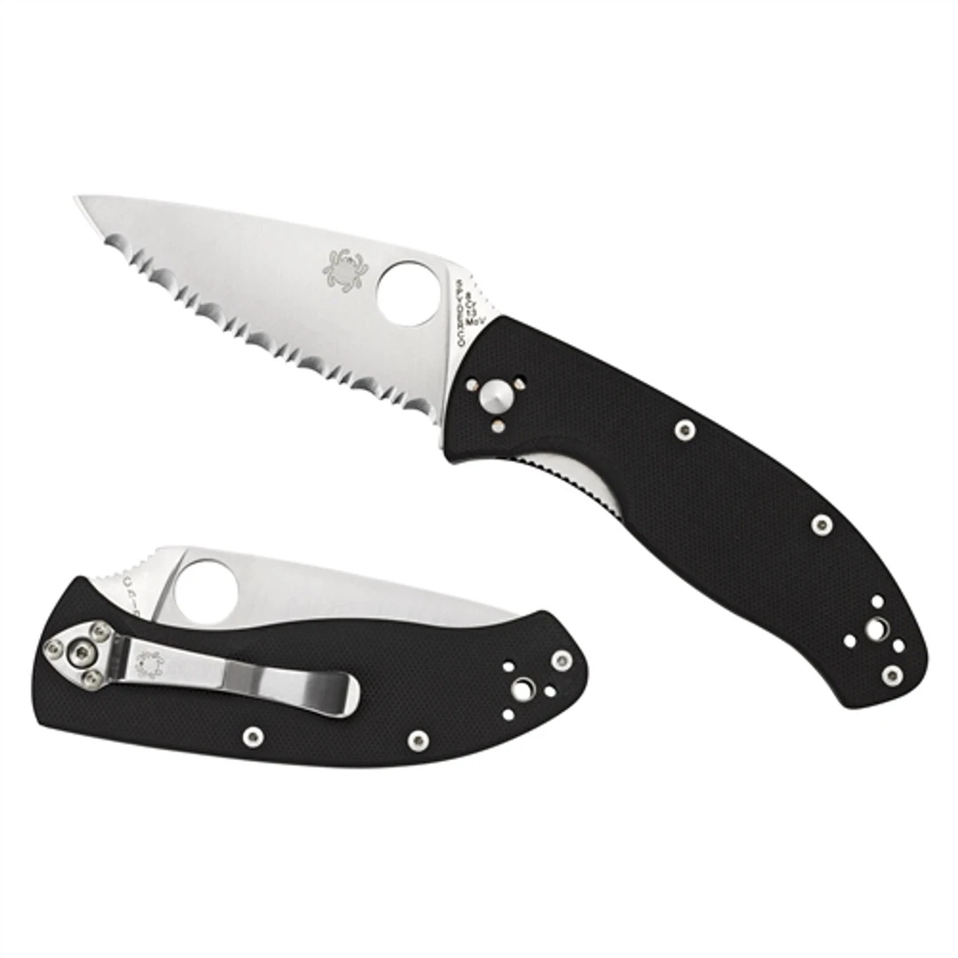 The Tenacious is 1 of 4 models Spyderco produced that embodies, and aptly named, the human nature of the “never give up” attitude. Ranked as the second largest of the group, each model features a liner lock opening/closing mechanism and the ergonomic profile allows you to complete your task with less fatigue. This knife is part of Spyderco’s Value Folder family which offers many different styles and models but certainly doesn’t sacrifice high quality for the low price. This model, the C122GS, features a black G-10 laminate handle, skeletonized stainless steel liners, a fully serrated (SpyderEdge) drop point style blade in a satin finish, Spyderco’s trademark round hole opening feature and an ambidextrous 4-way positional pocket clip which allows for a tip up or tip down carry option on either side of the handle.