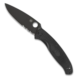 Spyderco C142PSBBK Resilience Folder Knife, Black Oxide Combo Blade. This tough folding knife is made with great care, providing you with high quality construction at a low price. This knife is slender, with a stainless steel blade for superb cutting power. The partially serrated blade boasts a black, oxide-coated finish. Paired with the black handle scales that provide a no-slip grip, this knife is sleek and classy. With a thumb hole incorporated into the blade, this knife is easy to open with either hand. This lightweight knife is ready for all your cutting needs.Â