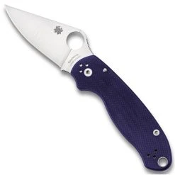 The Para 3 folder model was designed through the original concept of the ever-so-popular Spyderco Paramilitary series but never quite made it into production. At last, after much anticipation and suggestions from the beloved family of Spyderco lovers worldwide, the Para 3 is ready to launch into the hands of the consumer. The Paramilitary 2 has been regarded as one of the most popular folder knives ever created and so the Spyderco Para 3 offers the same exceptional performance and reliability but in a more compact and pocket-friendly design. Each model features a premium stainless steel blade that is supported by Spyderco’s patented Compression Lock™ mechanism–allowing users to safely close the blade with one hand without ever having the operating hand come near the cutting edge. Much like the design of Paramilitary 2, it still features a slightly flared handle base as well as the integrated jimping which provides increased control with any cutting job. This upgraded model, the C223GPDBL, features a dark blue G-10 handle, a satin finished clip point style blade, Spyderco’s trademark round hole opening feature and an ambidextrous 4-way positional pocket clip which allows for a tip up or tip down carry option on either side of the handle. Made in the USA.