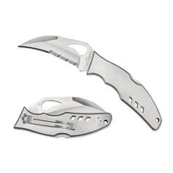The Shaman is a take on the popular USA-made Spyderco Native folder series–now sporting a longer blade and handle but still featuring a finger choil, finger groove and a prominent swedge for an array of grip options. Much like the acclaimed Paramilitary 2 and Para 3 models, each knife features Spyderco’s patented Compression Lock™ mechanism–allowing users to safely close the blade with one hand without ever having the operating hand come near the cutting edge. This model, the C229GP, features a matte black G-10 handle, skeletonized stainless steel liners, a leaf shaped blade in a stonewash finish, Spyderco’s trademark round hole opening feature and the fully ambidextrous pocket clip is designed for tip up or tip down carry on either side of the handle. Made in the USA.