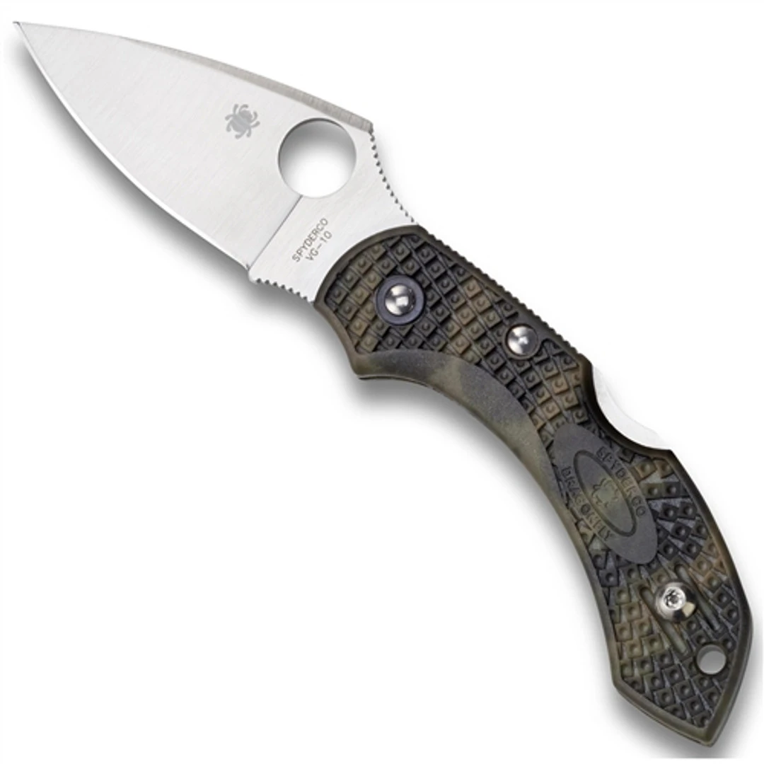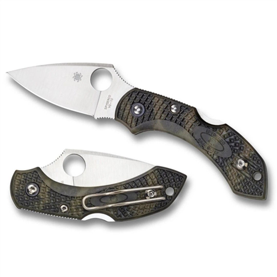 The Dragonfly 2, while not a new knife by any means, quickly gained notoriety with its incredibly lightweight yet versatile design. Now in its 2nd generation, each model not only features a front finger choil in addition to a lock back design, but the positive thumb ramp aids blade control especially when performing finer tasks. Additionally, the patented Bi Directional Texturing featured on many of their models allows the knife to remain feather-light while performing like a heavyweight. In 2016, Spyderco introduced the Zome (zoh-may) finish of models which is the ancient Japanese art of creating patterns using dyes from plants, flowers, fruits and other natural sources. Once the traditional injection molded FRN (fiberglass reinforced nylon) handle scales have been molded, expert Japanese artisans perform hiki-zome (brush dyeing) to hand brush unique, almost one-of-a-kind patterns. Much like anodization, the special dyes used completely permeate the FRN handle to permanently color it. This model, the C28FPZGR2, features a zome green FRN (Fibergrass Reinforced Nylon) handle, a satin finished drop point style blade, Spyderco’s trademark round hole opening feature and the reversible pocket clip allows for a tip up only but is eligible for a left or right hand carry option.