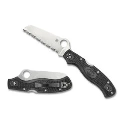 The Spyderco Counter Puppy Blue Combo Knife is a distinctive knife with a unique design that will bring new life to your kitchen. The shape of the handle is designed to look like the stylized body and legs of a puppy. This innovative design allows the knife to stand upright on a counter or table, keeping them clean and handy.