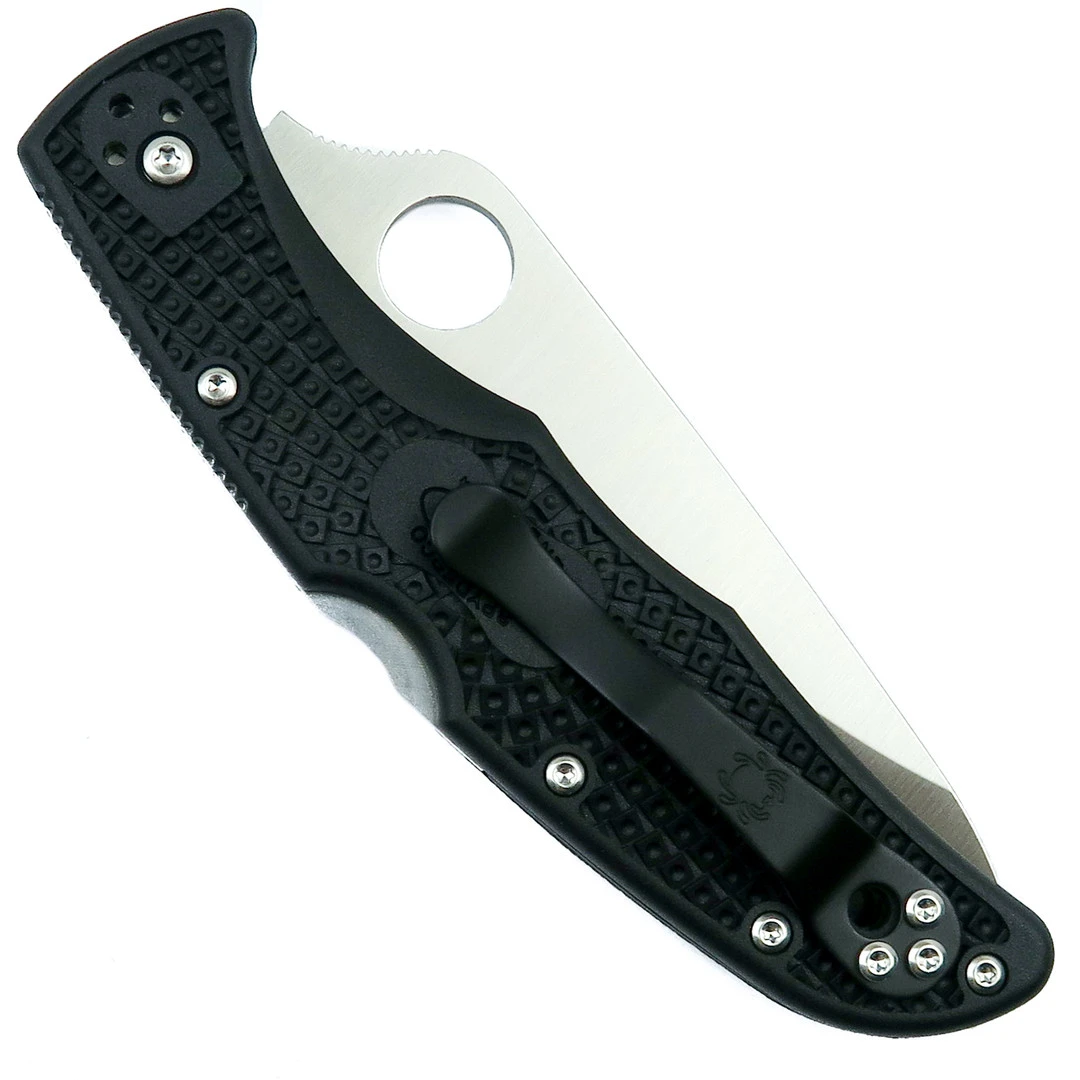 The Spyderco Endura series first debuted over 25 years and blazed the trail as one of the first lightweight clip-carry folder knives. Now in its 4th generation, the Spyderco Endura 4 folder knife has continually improved upon itself–offering a broad range of variations and finishes to meet virtually every users taste, style and needs. This model, the C10PSBK, features a black bidirectionally textured lightweight FRN (fiberglass reinforced nylon) handle and a partly serrated drop point blade in a satin finish. Each model in the Endura 4 family comes standard with a high strength lock back mechanism, stainless steel liners, Spyderco’s trademark round hole opening feature and an ambidextrous 4-way positional pocket clip which allows for a tip up or tip down carry option on either side of the handle.
