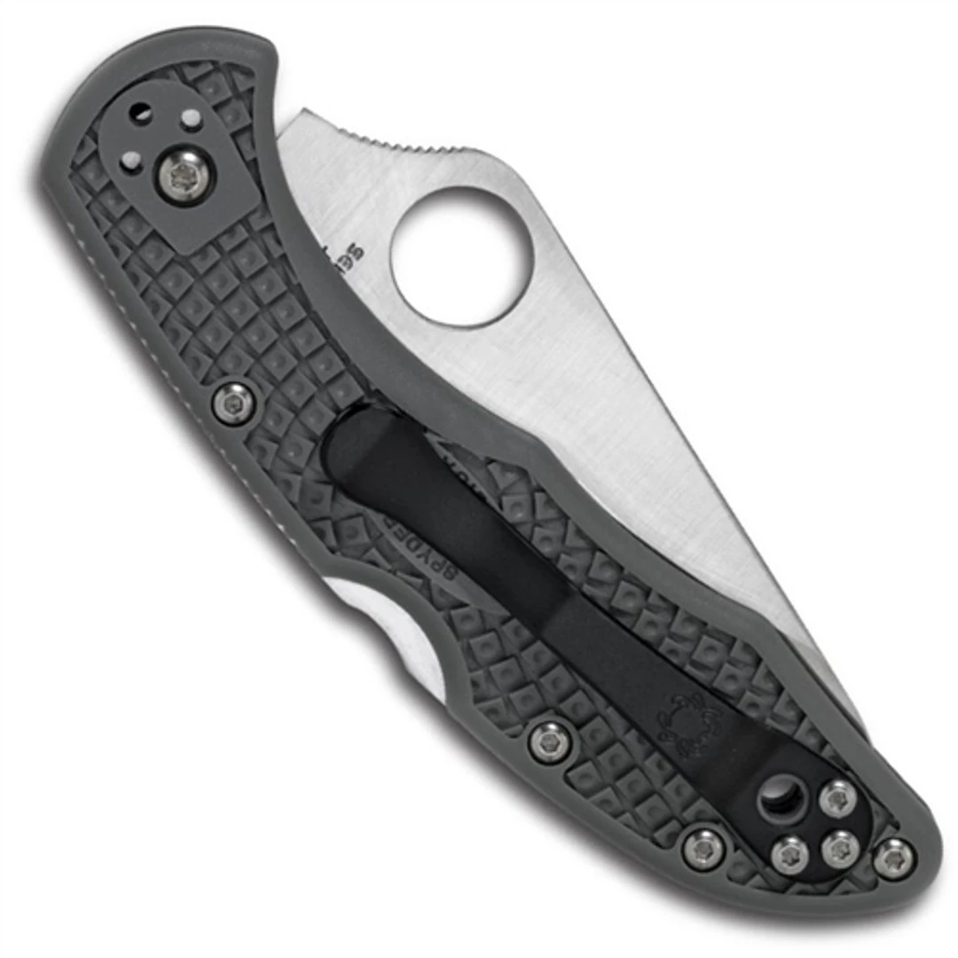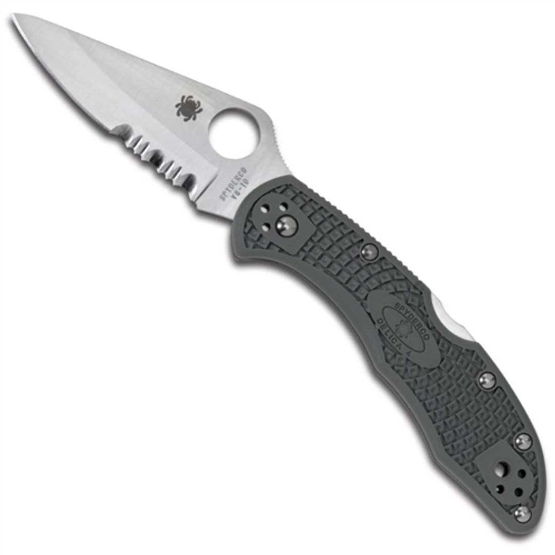 The Spyderco Delica series emulates all of the same outstanding qualities that define the Spyderco Endura series, but in a smaller and more compact package. Now in its 4th generation, the Spyderco Delica 4 folder knife has continually improved upon itself–offering a broad range of variations and finishes to meet virtually every users taste, style and needs. This model, the C11PSFG, features a foliage green bidirectionally textured lightweight FRN (fiberglass reinforced nylon) handle and a partly serrated drop point blade in a satin finish. Each model in the Delica 4 family comes standard with a high strength lock back mechanism, stainless steel liners, Spyderco’s trademark round hole opening feature and an ambidextrous 4-way positional pocket clip which allows for a tip up or tip down carry option on either side of the handle.