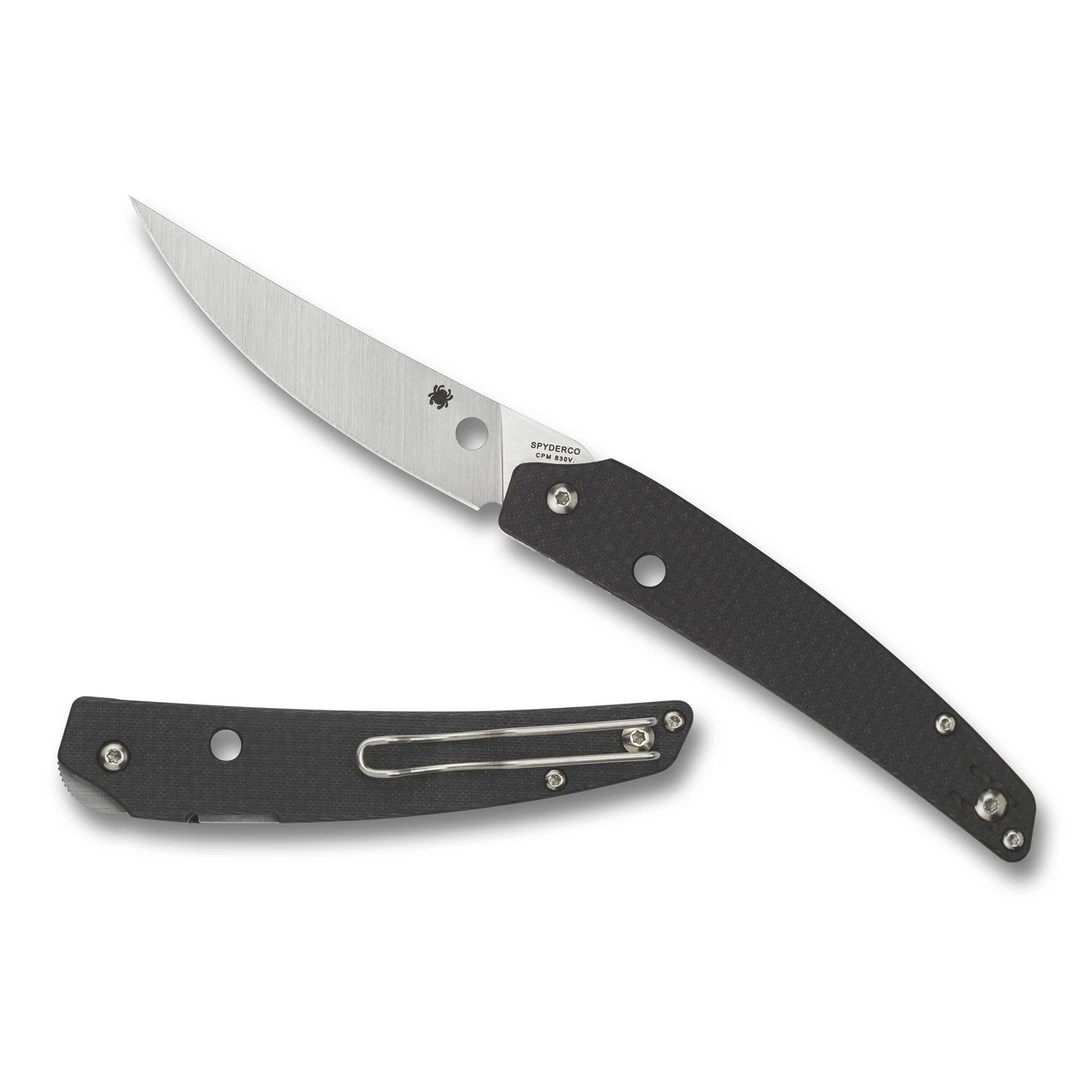 What do you get when you cross a knife enthusiast with someone who has earned a PhD in Mechanical Engineering? You get designer Paul Alexander and the new Ikuchi. Pronounced ee-koo-chee, this knife was named after a mythical Japanese sea monster and boasts an elegant profile packed full of new features. There is a small textures section of the tang that serves as the flipper opener while sporting a stainless steel blade that is supported by Spyderco’s patented Compression Lockâ„¢ mechanism–allowing users to safely close the blade with one hand without ever having the operating hand come near the cutting edge. This model features carbon fiber and G-10 laminate handle scales, skeletonized stainless steel liners, a trailing point style blade in a satin finish and the reversible pocket clip is designed for tip up carry only but is eligible for a left or right hand carry option.